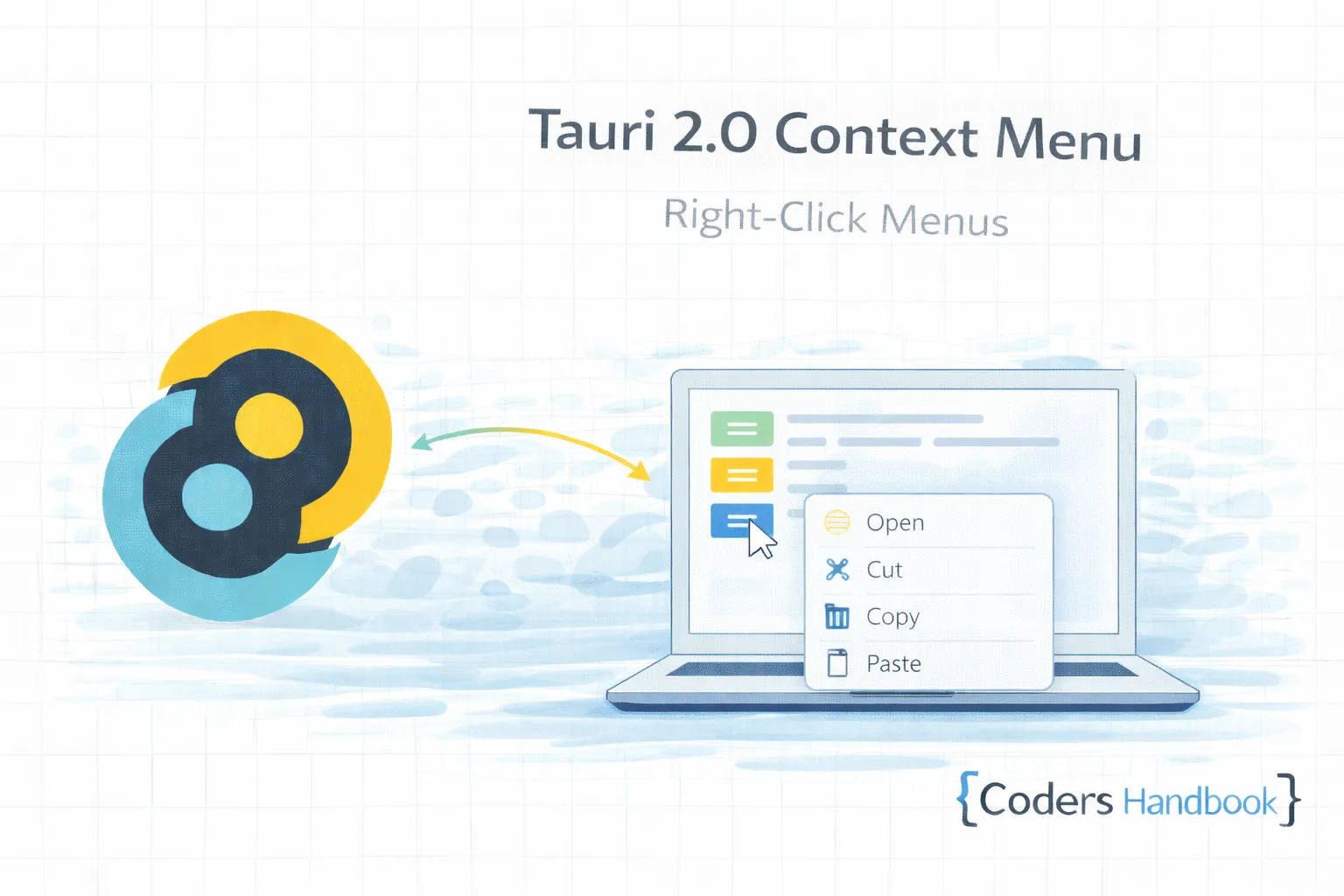 Context menus in Tauri 2.0 provide right-click functionality displaying contextual actions relevant to clicked elements maintaining familiar desktop interaction patterns users expect from native applicationsâessential feature for text editors, file managers, image editors, and any application requiring contextual commands providing quick access to actions without cluttering main UI maintaining efficient workflows. Context menu system combines browser contextmenu event detection triggering menu display with custom HTML/CSS menu rendering or native platform menus, position calculation placing menu near cursor avoiding screen edges, keyboard navigation supporting arrow keys and Enter, and action dispatching executing commands when items selected delivering native-feeling context menus. This comprehensive guide covers understanding context menu architecture and implementation approaches, creating basic HTML context menus with CSS positioning, preventing default browser menus maintaining custom behavior, implementing keyboard navigation with arrow key support, adding menu separators and submenus organizing actions, building platform-native menus using Tauri Menu API, handling dynamic menu items changing based on context, and creating real-world examples including text editor with formatting menu, file browser with file operations, and image editor with edit actions maintaining productive context-aware workflows. Mastering context menu patterns enables building professional desktop applications providing familiar right-click interactions maintaining efficiency through contextual command access. Before proceeding, understand window management and event handling.